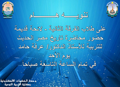 اعلان / اخبار / By editor / October 16, 2022 اعلان هام لطلاب الفرقة الثانية – جميع الشعب – لائحة قديمة حول تحديد موعد محاضرة تاريخ مصر الحديث