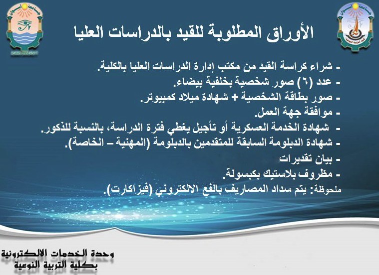 تقرر مد القيد بالدراسات العليا حتى يوم 15 من شهر سبتمبر الجاري للعام الجامعي 2026/2025م