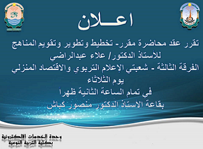 اعلان / اخبار / By editor / February 12, 2024 اعلان هام لطلاب الفرقة الثالثة – لشعبتي الاعلام التربوي والاقتصاد المنزلي.