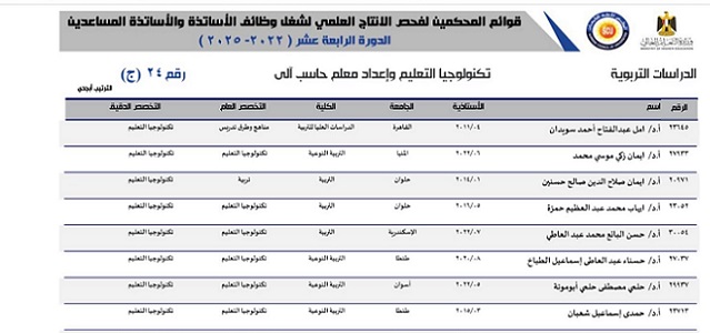 تتقدم كلية التربية النوعية بأجمل التهاني وأصدق الدعوات للأستاذ الدكتور/ رجاء علي عبد العليم – أستاذ تكنولوجيا التعليم بالكلية – بمناسبة اختياره عضواً باللجنة العلمية لفحص الإنتاج العلمي لترقية الأساتذة والأساتذة المساعدين تخصص تكنولوجيا التعليم وإعداد معلم حاسب آلي في دورتها الرابعة عشر ( 2022 – 2025 )