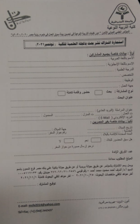استمارة إشتراك نشر بحث بالمجلة العلمية للكلية
