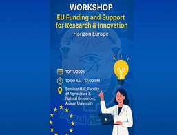 Within the framework of fruitful cooperation between Aswan University, the Academy of Scientific Research and Technology, and the Egyptian Knowledge Bank the University is organizing a workshop entitled “EU Funding and its Support for Scientific Research and Innovation”, to be held on Monday, November 10, 2025. Venue: Seminar Hall – Faculty of Agriculture and Natural