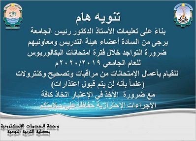 . على طلاب الفرقة الرابعة الباقين بدون عذر مراعاة أنه تقرر تكليفهم بعمل مشروع بحثي