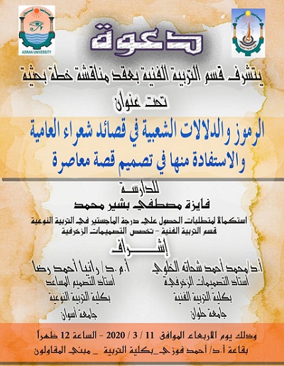 . أقام قسم التربية الفنية بالكلية سيمينار لمناقشة الخطة البحثية المقدمة من الباحثة أية يوسف