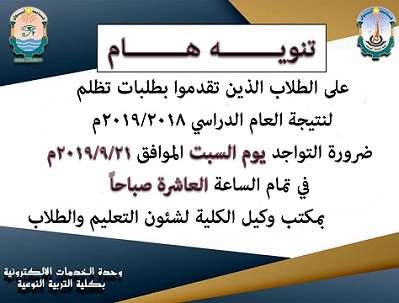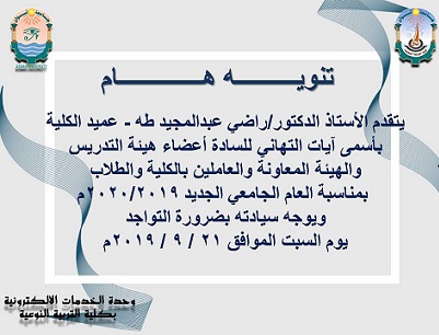 تنويه هام للسادة أعضاء هيئة التدريس والهيئة المعاونة والعاملين بالكلية والطلاب .
