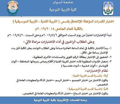 تقرر عقد اختبارات القدرات للطلاب المصريين الحاصلين على الشهادات المعادلة (العربية والأجنبية) والطلاب الوافدين لهذا