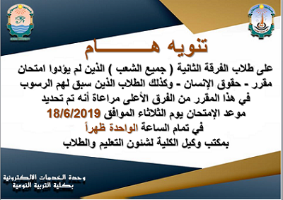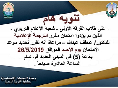 على طلاب الفرقة الأولى – شعبة الإعلام التربوي – الذين لم يؤدوا امتحان مقرر الترجمة