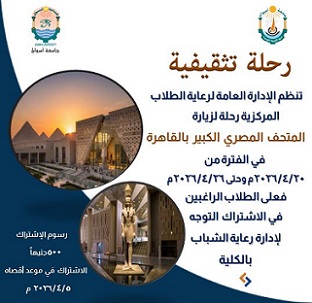 تنظم الإدارة العامة لرعاية الطلاب المركزية رحلة لزيارة المتحف المصري الكبير بالقاهرة في الفترة من