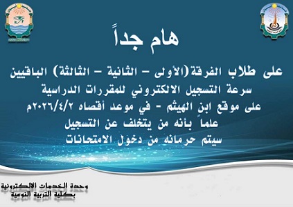 على الطلاب الباقيين الفرقة ( الأولى والثانية والثالثة ) سرعة التسجيل الالكتروني للمقررات الدراسية في