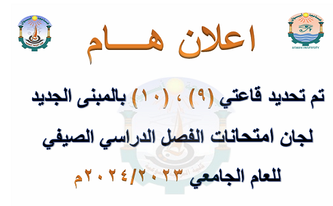 بيان أماكن لجان امتحانات الترم الصيفي للعام الجامعي 2023/2024