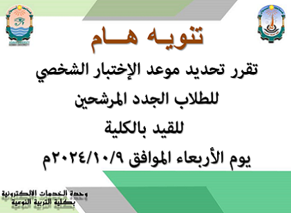 على الطلاب الآتي أسماؤهم والمرشحين بكلية التربية النوعية للعام الجامعي 2024/2025 التواجد بمقر الكلية يوم