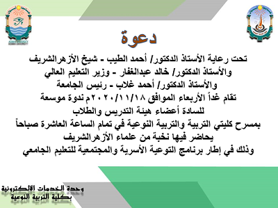 . تحت رعاية الأستاذ الدكتور/ أحمد الطيب – شيخ الأزهرالشريف والأستاذ الدكتور/ خالد عبدالغفار –