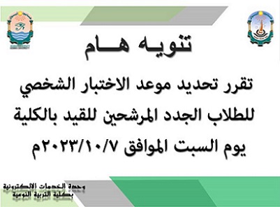 تنويه هام / اخبار / By editor / September 25, 2023 تم تحديد موعد المقابلة الشخصية للعام الجامعي 2023/2024 يوم السبت الموافق 3/10/2023 .