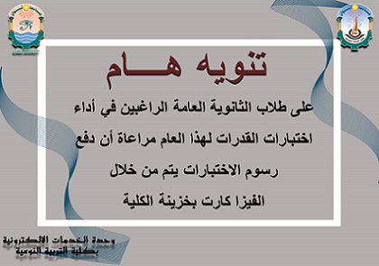 تنويه هام / اخبار / By editor / July 13, 2023 تنويه هام لطلاب الثانوية العامة الراغبين في أداء اختبارات القدرات لهذا العام .