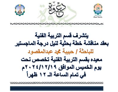 يتشرف قسم التربية الفنية بعقد سيمنار للباحثة / حبيبة محمد عبدالمقصود معيده بقسم التربية الفنية تخصص