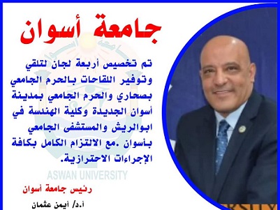 جامعة أسوان : بدء أعمال تطعيم اللقاح لفيروس كورونا استعداداً لإستقبال العام الجامعي الجديد