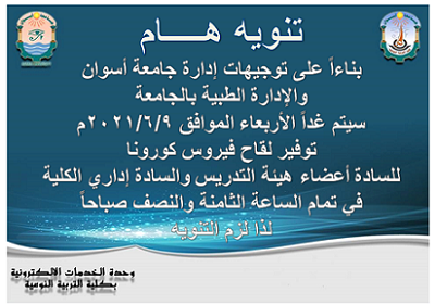 أمسية وطنية تحت شعار- في حب الوطن - شهدها الأستاذ الدكتور/ أحمد غلاب - رئيس الجامعة والسادة النواب والعمداء والقيادات الأمنية والعسكرية والتنفيذية والدينية بمحافظة أسوان، تضمنت تقديم كورال الكلية عدداً من المقطوعات الغنائية بقيادة الدكتور/ محمد راشد - رئيس قسم التربية الموسيقية .