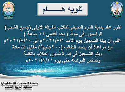اعلان هام لطلاب الفرقة الأولى