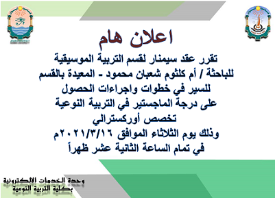 دعوة لحضور حلقة بحثية بقسم التربية الموسيقية
