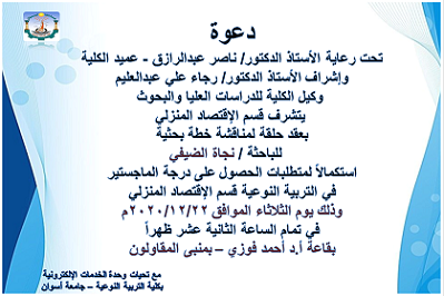 أمسية وطنية تحت شعار- في حب الوطن - شهدها الأستاذ الدكتور/ أحمد غلاب - رئيس الجامعة والسادة النواب والعمداء والقيادات الأمنية والعسكرية والتنفيذية والدينية بمحافظة أسوان، تضمنت تقديم كورال الكلية عدداً من المقطوعات الغنائية بقيادة الدكتور/ محمد راشد - رئيس قسم التربية الموسيقية .