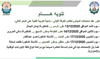 جدول امتحانات العملي لشعبة التربية الفنية