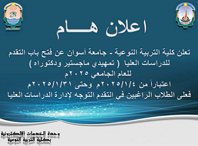 أن يصبح قسم التربية الفنية نموذجا للأقسام المبدعة في كلية التربية النوعية جامعة أسوان من خلال إرشاد الطلاب
