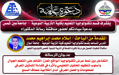 مناقشة رسالة الماجستير للباحثة إسراء طارق