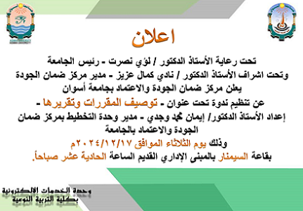 أن يصبح قسم التربية الفنية نموذجا للأقسام المبدعة في كلية التربية النوعية جامعة أسوان من خلال إرشاد الطلاب