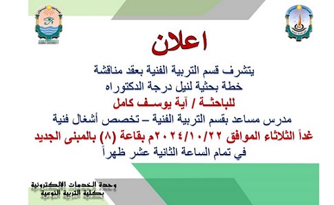 أن يصبح قسم التربية الفنية نموذجا للأقسام المبدعة في كلية التربية النوعية جامعة أسوان من خلال إرشاد الطلاب