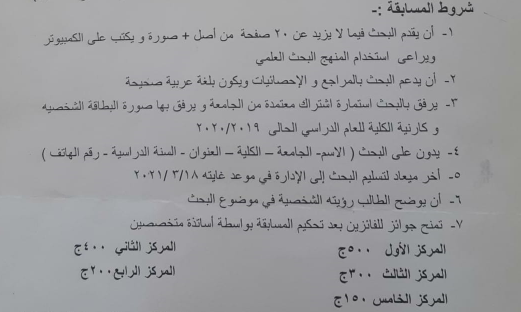 - وللتعرف على جوائز المسابقة يرجى الضغط على مسابقة بحثية