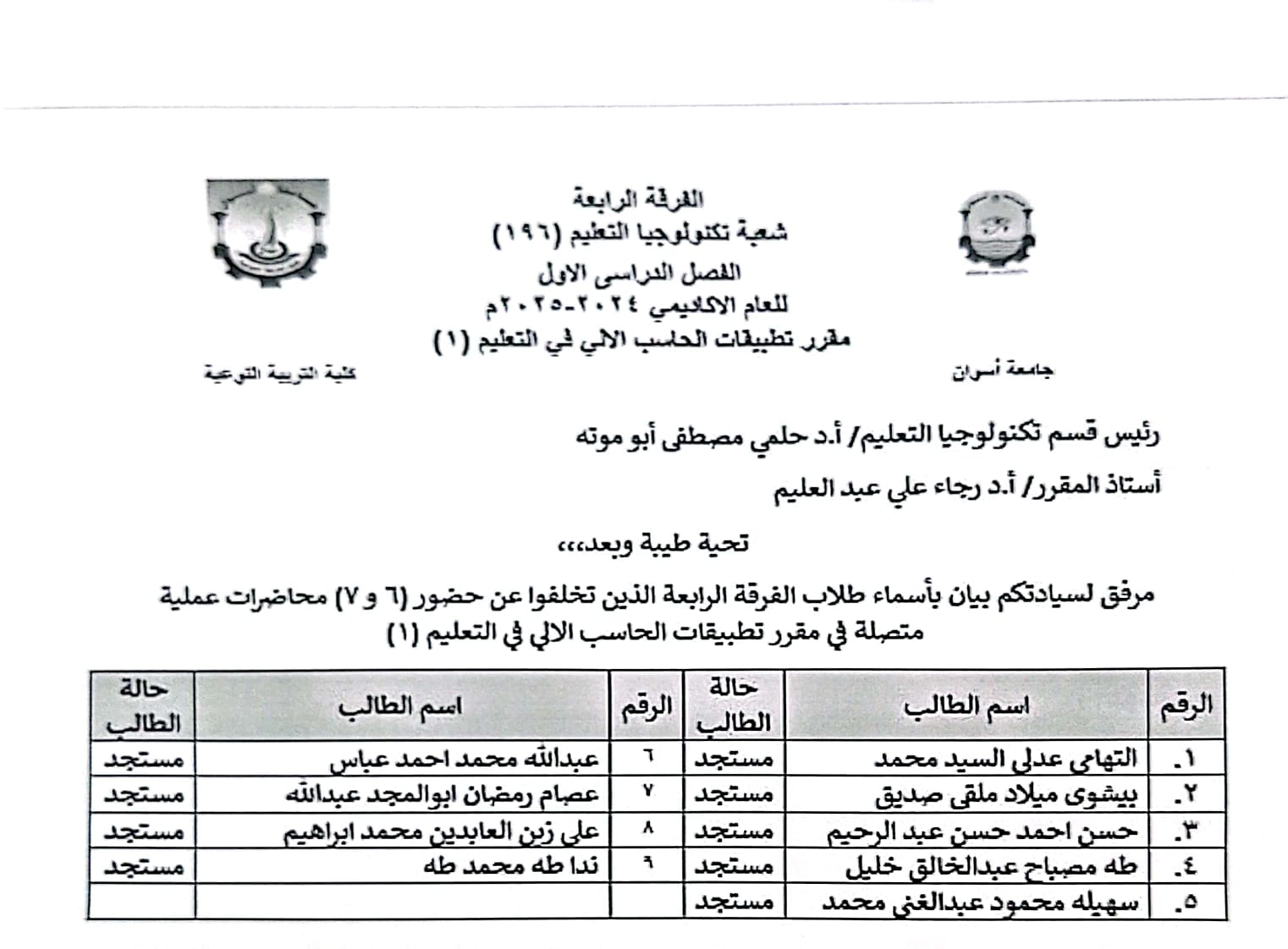 الفرقة الرابعة – تطبيقات الحاسب الآلي في التعليم (1)