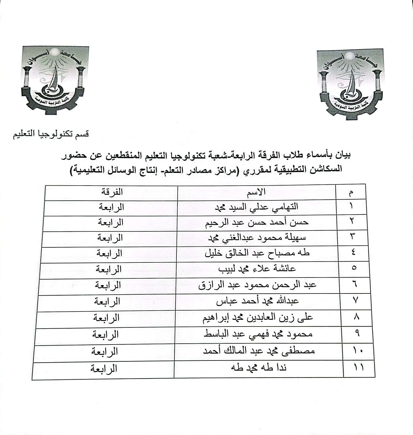 الفرقة الرابعة – مقرري ( مراكز مصادر التعلم – إنتاج الوسائل التعليمية )
